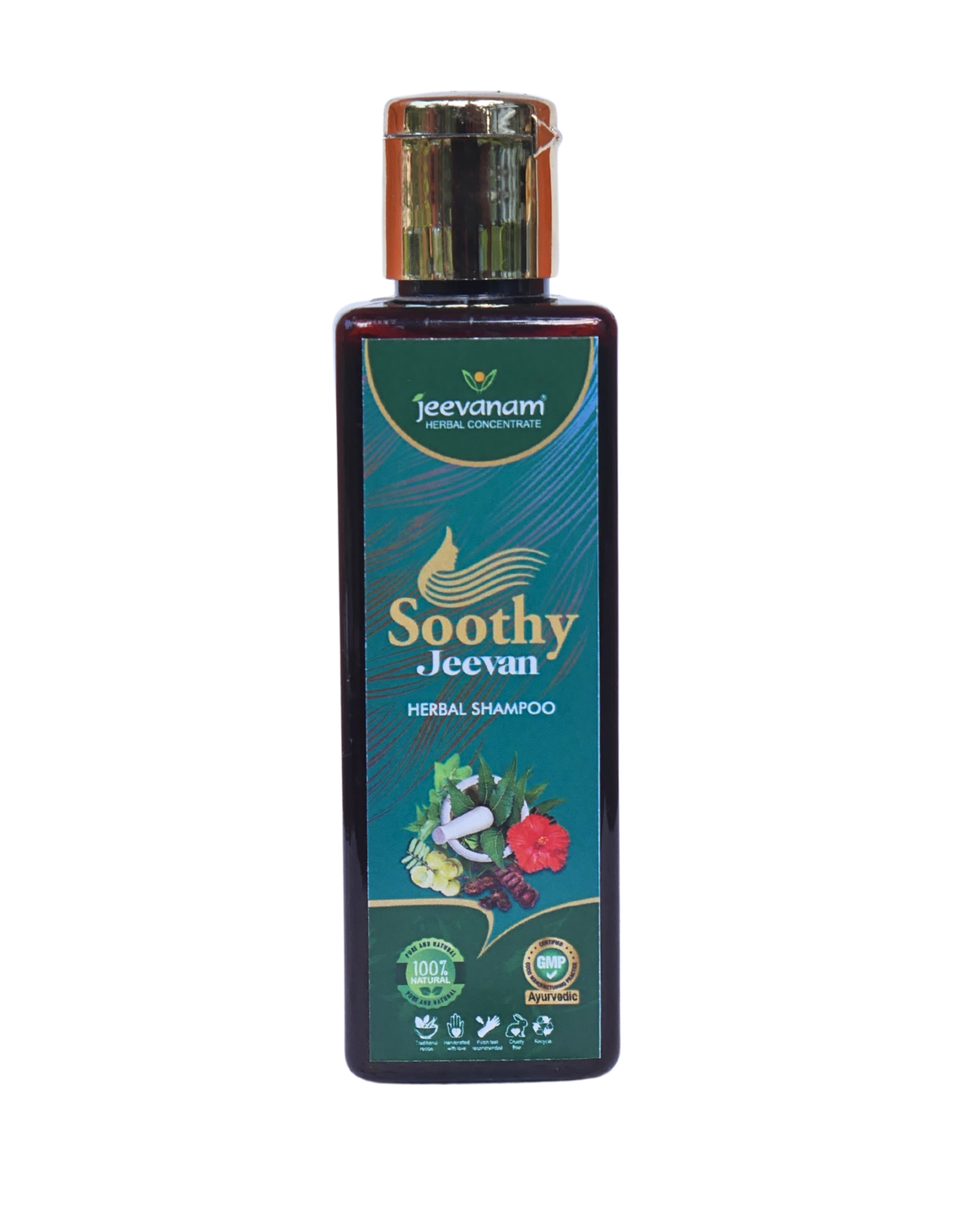 Soothy Jeevan Herbal Shampoo is a soothing, scalp-friendly Ayurvedic formulation made using six traditional herbs, each chosen for its natural cleansing, calming, and strengthening benefits. Prepared according to classical Ayurvedic references, this shampoo offers a gentle yet effective cleanse—ideal for sensitive scalp, itchy scalp, dryness, hair fall, and overall hair nourishment.